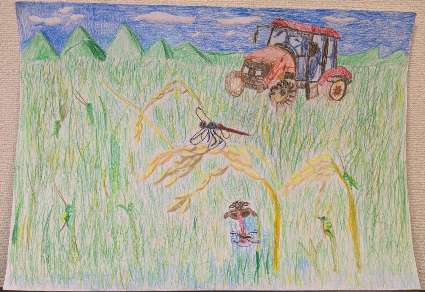今回、特に目を引いたのは、「未来へつなごう!ふるさとの美土里子ども絵画展2025」での皆川拓仁君の作品です🖼️
